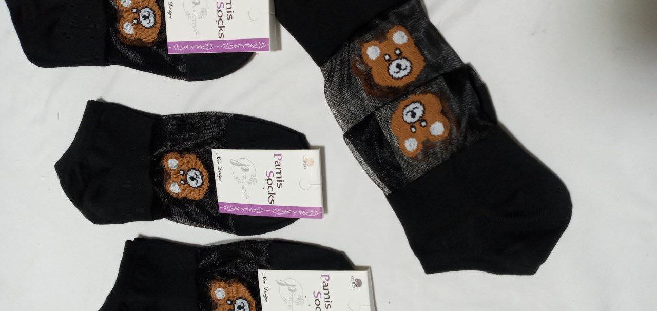جوراب مچی زنانه طرح خرسی بهاره شیشهای، سبک، لطیف و فانتزی با تهویه عالی، مناسب استفاده روزانه و فصول گرم سال.
